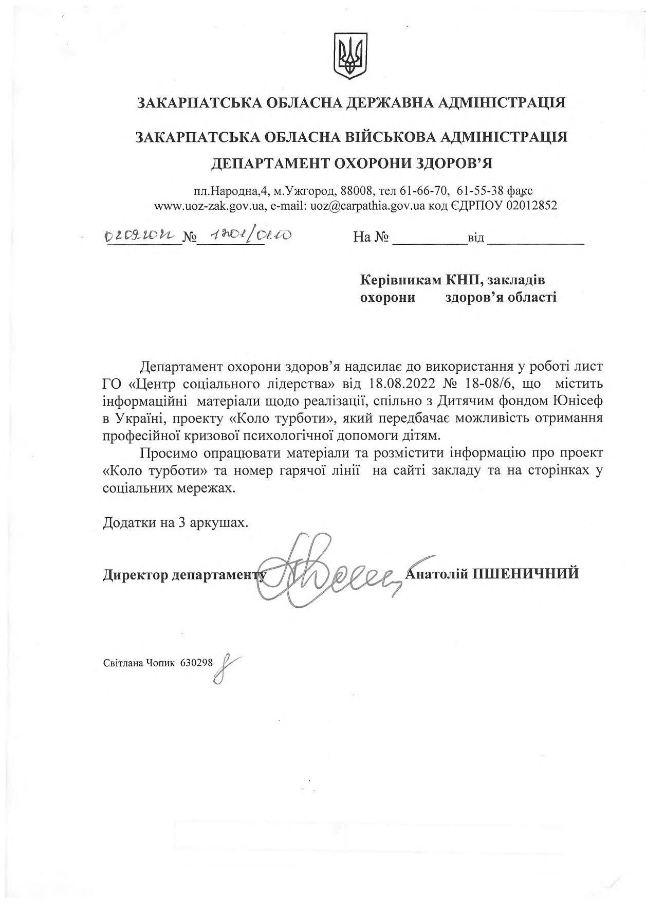 Звернення директора КНП «ЦПМСД» Свалявської міської ради Закарпатської області